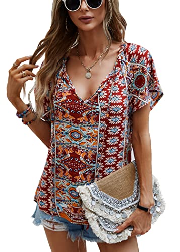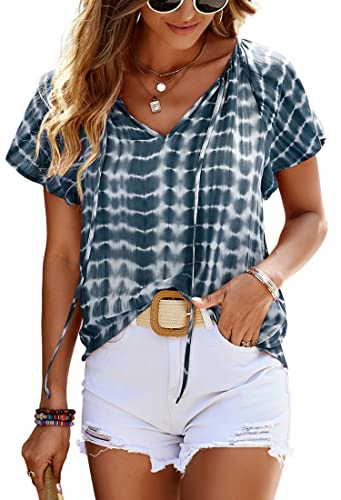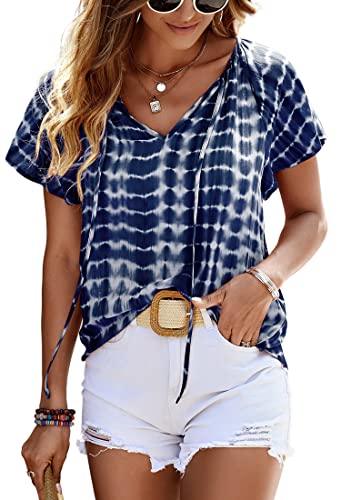 Embracing a delightful blend of style and comfort, this women’s summer top boasts a flattering v-neckline, adorned with captivating floral or leopard prints. The ruffle short sleeves add a touch of charm, while the loose-fitting design, accompanied by two strings, enhances its casual appeal.